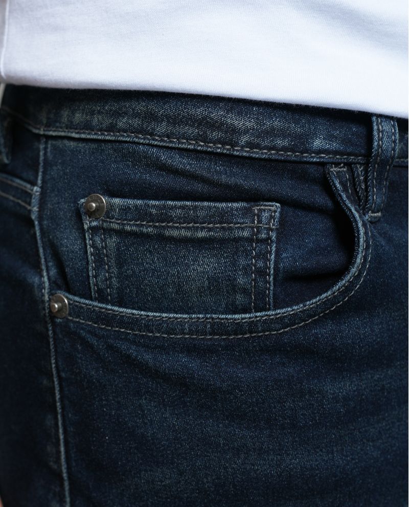 ¡Un jean pensado para destacar en lo cotidiano! Esta silueta Slim fit se ajusta cómodamente desde la cadera hasta la bota, con un tono azul oscuro que resalta gracias a las iluminaciones en muslos. Los bigotes y el diseño clásico de cinco bolsillos con cierre y botón hacen de esta prenda una apuesta segura para cualquier plan. *El modelo usa un jean talla 32. *Algunas pantallas pueden alterar el color real de la prenda.
