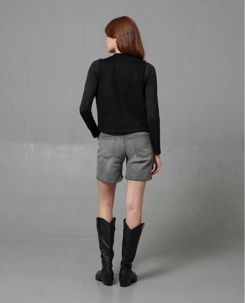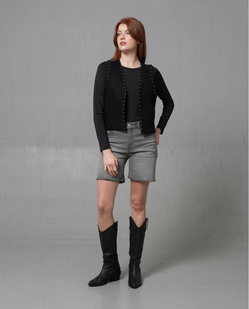 Esta bermuda es la elección perfecta para la mujer moderna que busca comodidad y estilo. Confeccionados con una mezcla de 70% algodón, 26% poliéster, 3% rayón y 1% elastano, ofrecen una sensación suave y ligera. Su diseño regular y ajustado pero no ceñido proporciona un ajuste cómodo y favorecedor. El color gris con efecto descolorido añade un toque de modernidad y versatilidad, ideal para cualquier ocasión casual.
