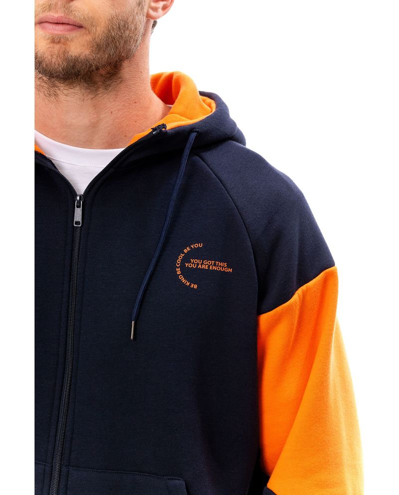 Buzo para hombre. Comfort fit con diseño de capucha y cierre. Cuenta con un estilo en bloques de color a juego con el interior de su capucha. Mini estampado en punto corazón y bolsillos tipo canguro. Detalles en rib en puños y ruedo. Llévalo con camisetas claras, jeans y tenis. *El modelo usa un buzo talla M. *Algunas pantallas pueden alterar el color real de la prenda.