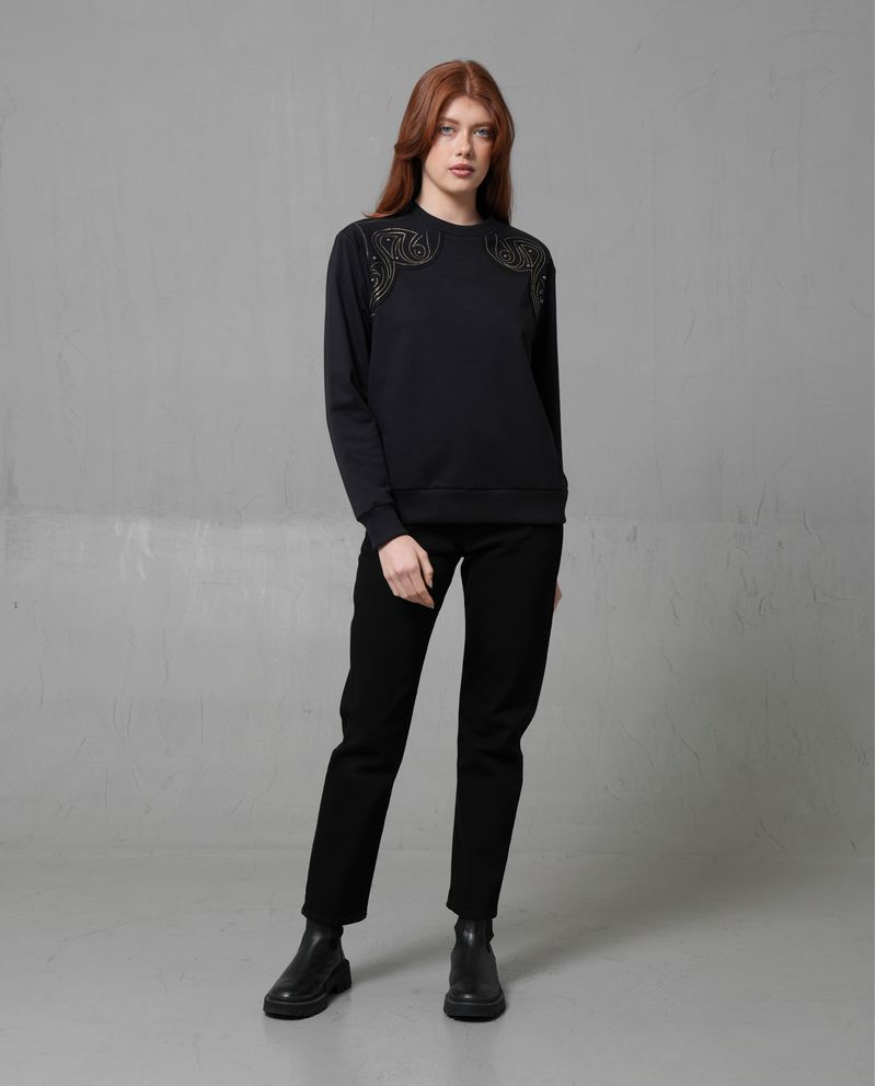 Este buzo es una prenda tipo suéter confeccionada con una mezcla de 65% poliéster y 35% algodón, lo que le confiere una textura suave y duradera. Su diseño en color negro sólido sin efectos de color lo hace un básico versátil para cualquier armario. Con un ajuste regular y cómodo, es ideal para quienes buscan una prenda clásica y relajada. La pretina elasticada en los puños y el dobladillo inferior asegura un ajuste perfecto.