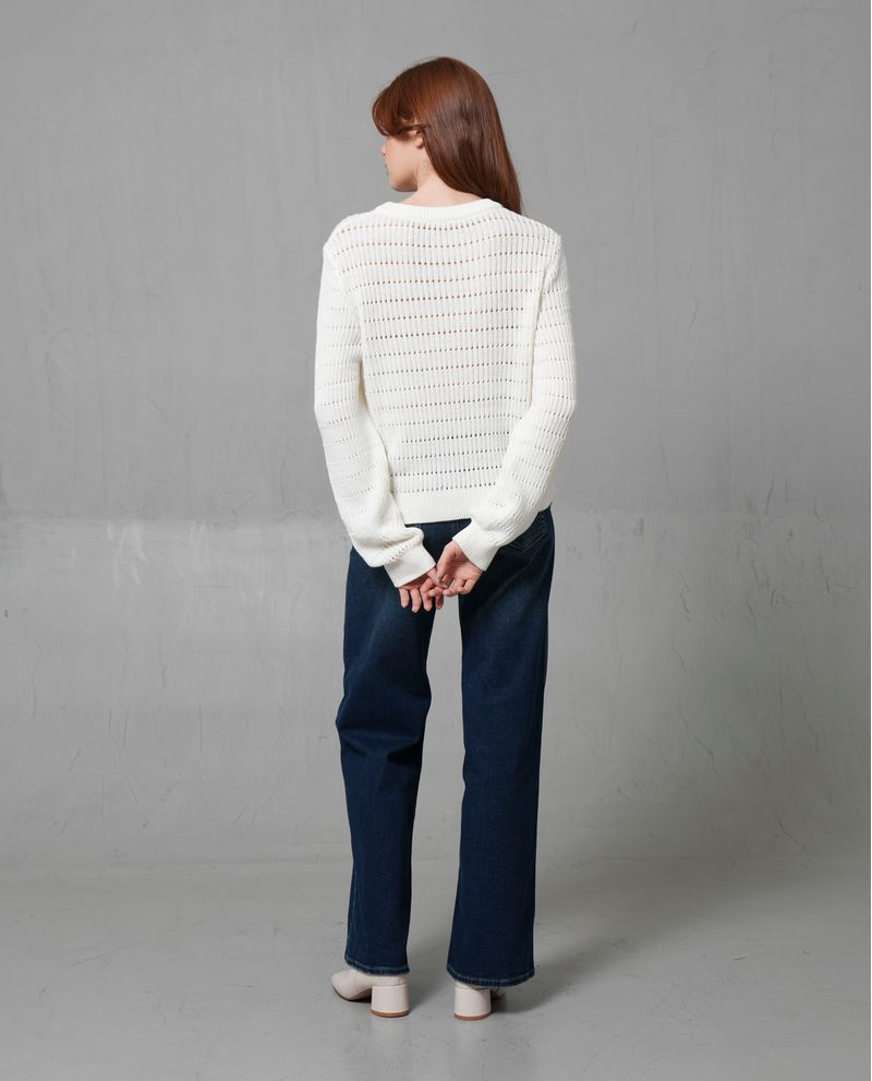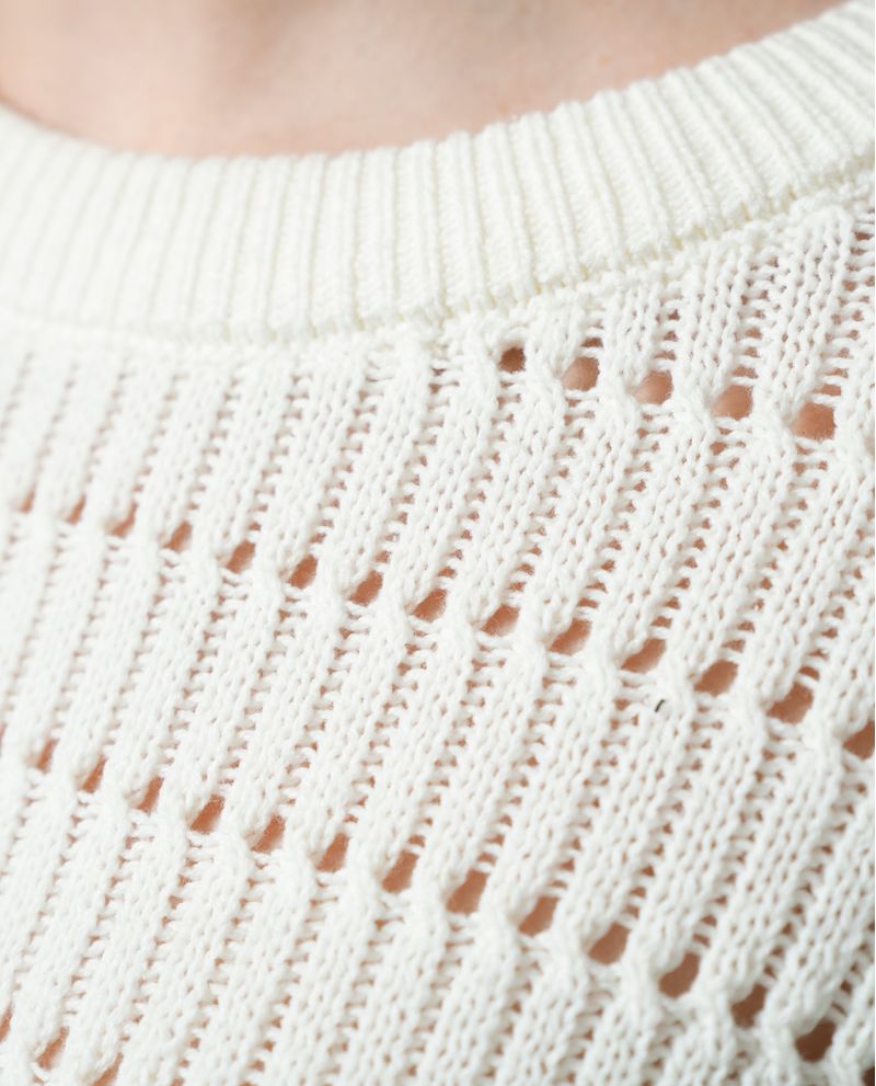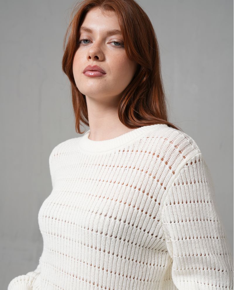 Este buzo de corte regular está diseñado para ofrecer comodidad y estilo. Confeccionado en un 60% de algodón y 40% de acrílico, su tejido abierto y liviano se adapta al cuerpo sin ser demasiado ajustado, proporcionando una caída natural. Ideal para el día a día, su color blanco uniforme lo hace versátil para combinar con diferentes prendas.