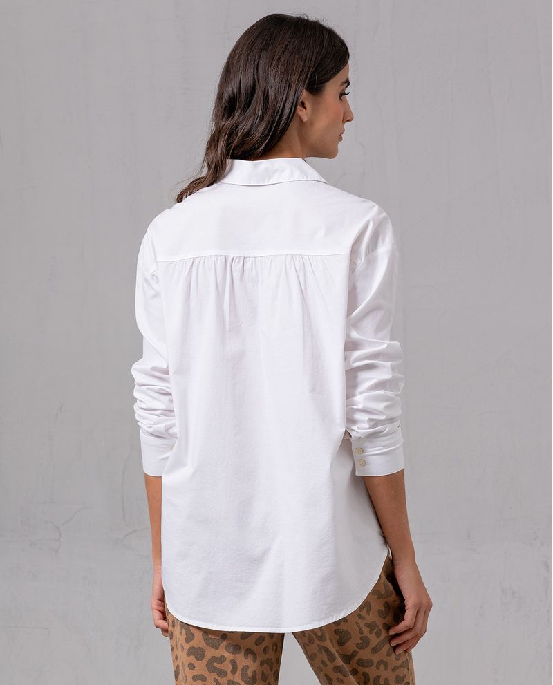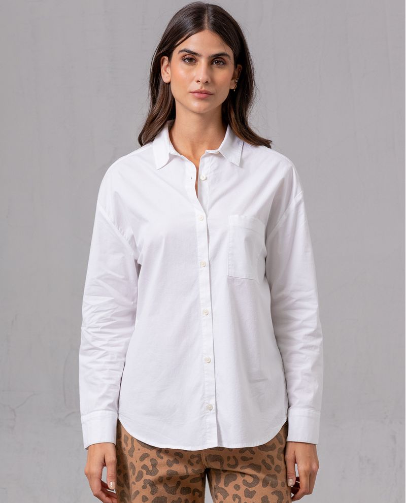 Camisa para mujer. Diseño clásico con manga larga y cuello regular. Lleva perilla de botones, botón en puños y bolsillo de parche en punto corazón. Corte en almilla posterior con recogido. Combínala con un jean skinny. *La modelo usa una camisa talla S. *Algunas pantallas pueden alterar el color real de la prenda.