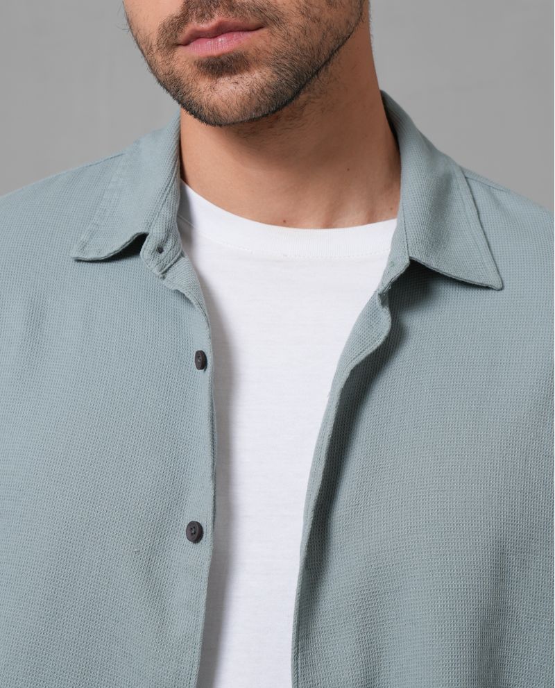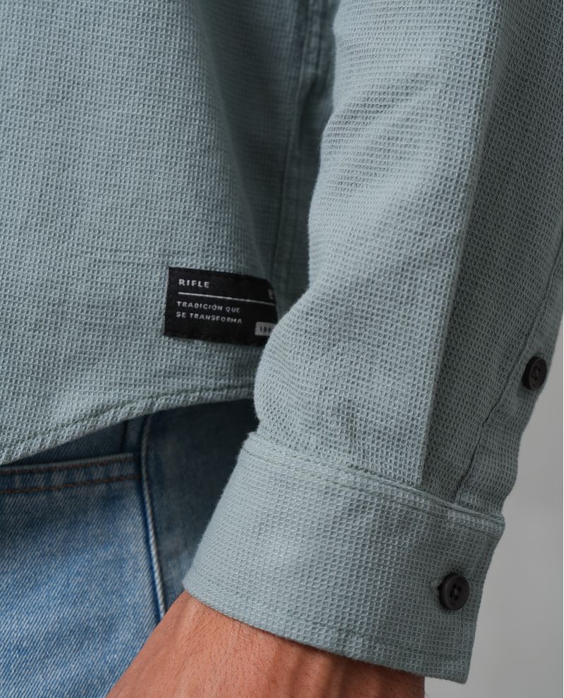 Camisa cuello regular y manga larga con textura para hombre | Tienda Online