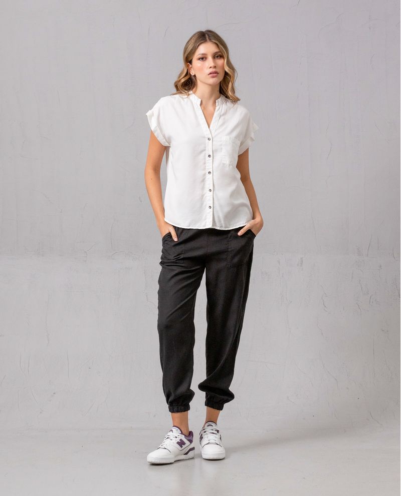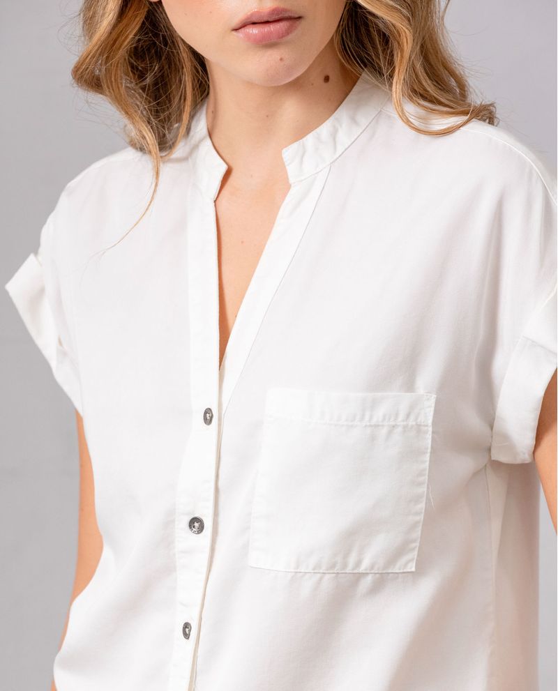 Esta camisa para mujer con escote en V es el equilibrio perfecto entre estilo y comodidad. La diseñamos de manga rodada con guardapolvo y un bolsillo en punto corazón para darle una esencia más relajada. Su fit confort y cuello neru crean un look fresco y favorecedor. Llévala con un pantalón jogger y tenis. *La modelo usa una camisa talla S. *Algunas pantallas pueden alterar el color real de la prenda.