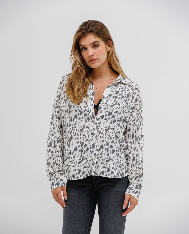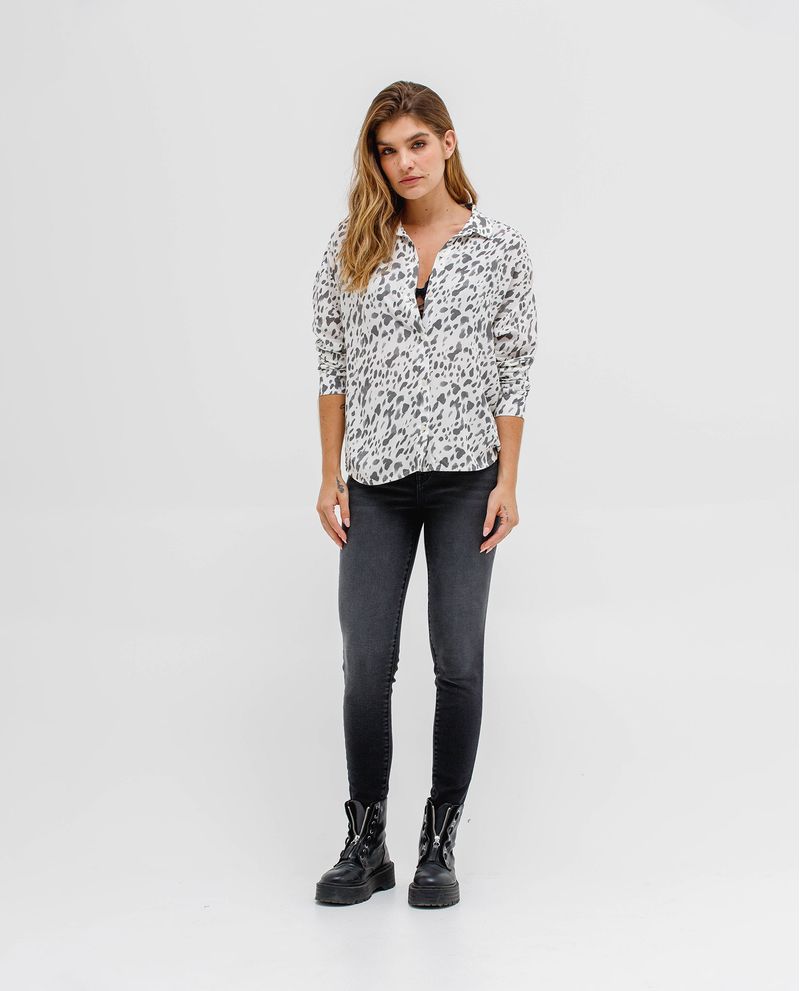Camisa para mujer. Comfort fit de manga larga rodada y cuello clásico. Cuenta con perilla de botones en frente y botón en puños. Diseño de estampado abstracto con posterior curvo más largo. Perfecta para usar con Skinny jeans y botines. *La modelo usa una camisa talla S. *Algunas pantallas pueden alterar el color real de la prenda.