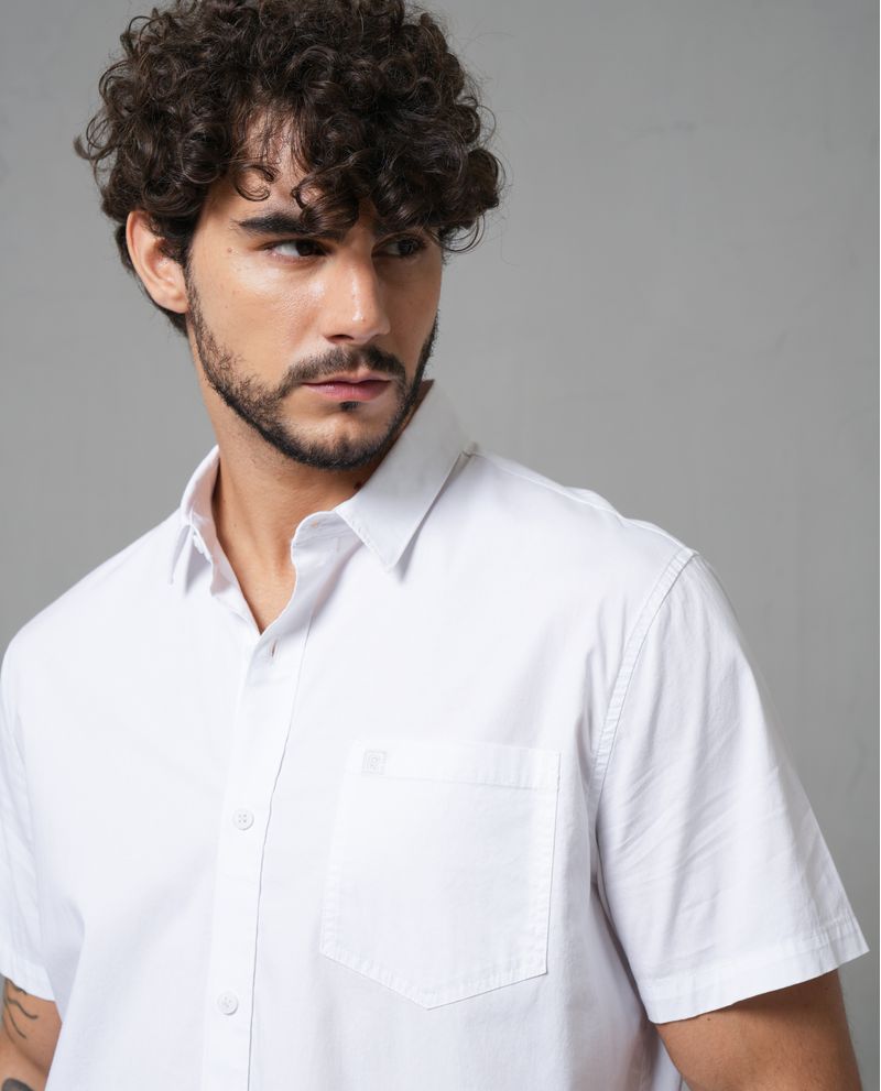 Camisa para hombre de silueta Comfort fit y manga corta. Esta prenda está diseñada para ofrecer frescura y libertad de movimiento sin perder el estilo. Cuenta con un bolsillo tipo parche en el frente con un sutil bordado R tono a tono. Ideal para combinar con jeans y crear un look con personalidad. *El modelo usa una camisa talla L. *Algunas pantallas pueden alterar el color real de la prenda.