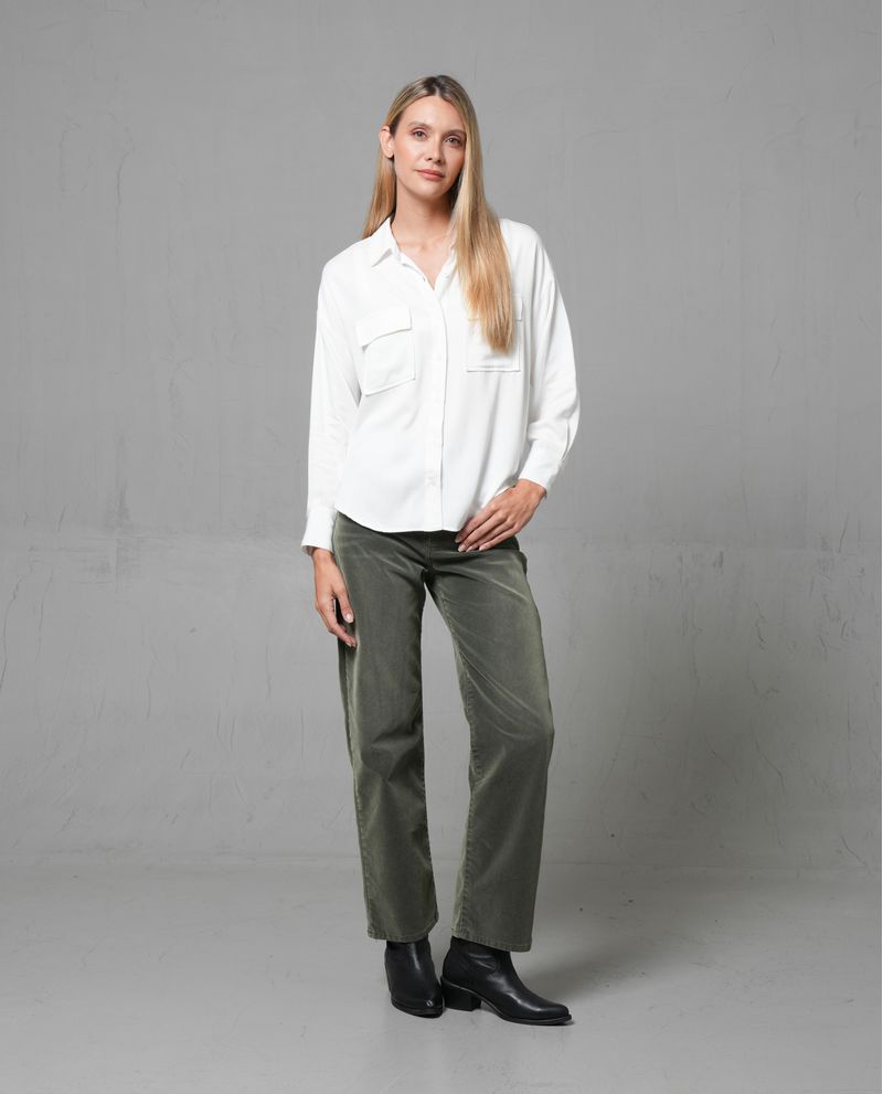 Esta camisa para mujer, confeccionada en viscosa de tejido liviano, es ideal para looks con un toque especial. Su diseño, con bolsillos de tapa en el frente y un bordado de texto en el posterior con detalles en lurex, añade brillo sutil. Perfecta para usar con pantalones y botas para un estilo casual/formal. *La modelo usa una camisa talla S. *Algunas pantallas pueden alterar el color real de la prenda.