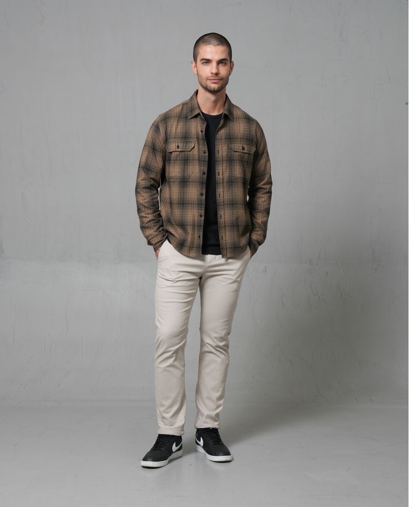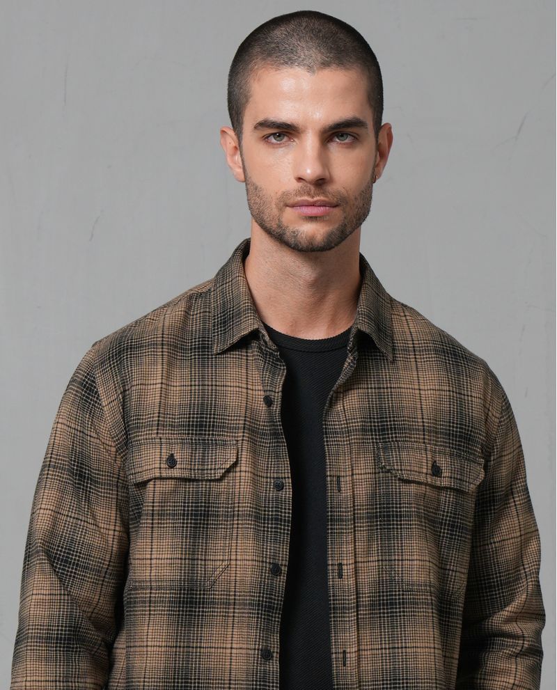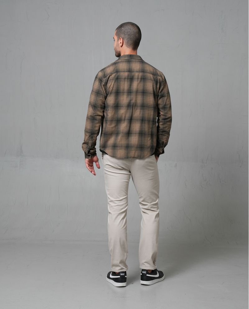 Camisa para hombre tipo leñadora de manga larga en tonos cafés y cuadros preteñidos. Es la opción perfecta para lograr un look moderno sin esfuerzo. Está elaborada en 100% algodón, lo que garantiza comodidad. Su diseño permite llevarla cerrada o abierta sobre una camiseta básica, sumando estilo. *El modelo usa una camisa talla L. *Algunas pantallas pueden alterar el color real de la prenda.