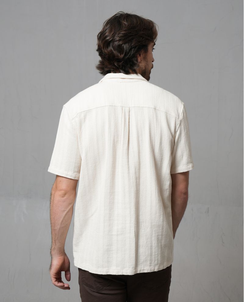 El estilo relajado se actualiza con esta camisa para hombre de manga corta y cuello tipo resort, confeccionada en 100% algodón con una textura pesada que le aporta carácter y diferenciación. Su perilla con botones y los detalles de marquilla decorativa en perilla y manga refuerzan un diseño pensado para destacar sin esfuerzo. Disponible en dos tonos, es perfecta para combinar con jeans o bermudas y lograr un look casual con un aire sofisticado. *El modelo usa una camisa talla L. *Algunas pantallas pueden alterar el color real de la prenda.