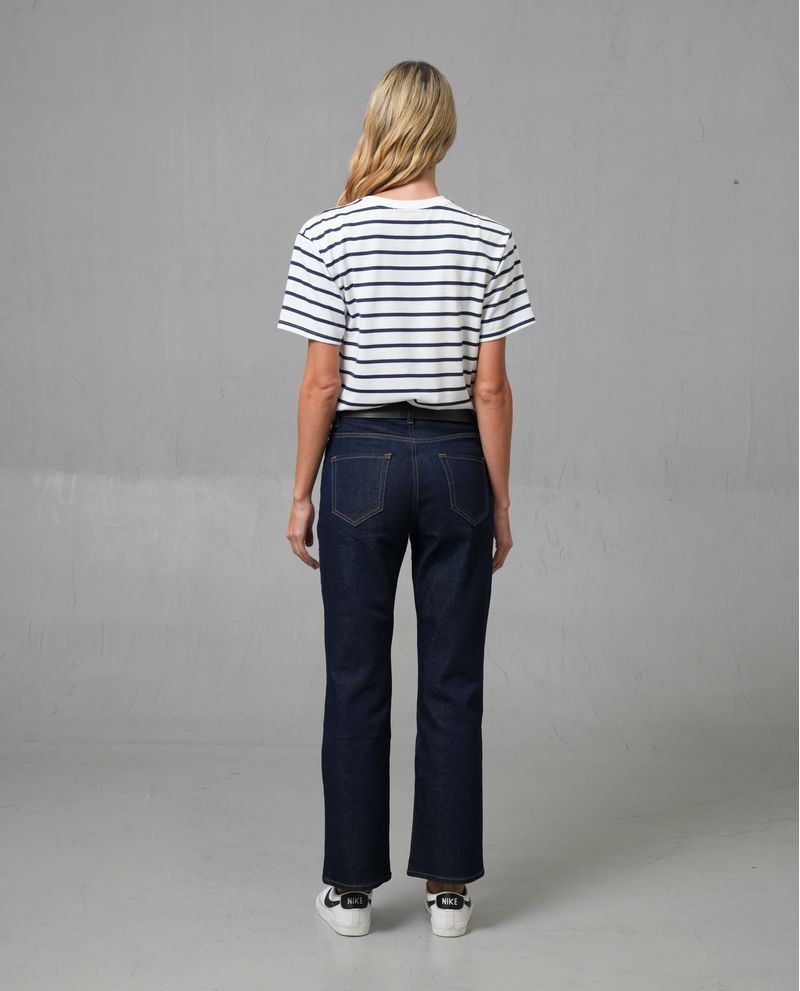 Características: Camiseta con ajuste regular, cuello redondo y mangas rectas. Estampado grande en el pecho y diseño de rayas horizontales.