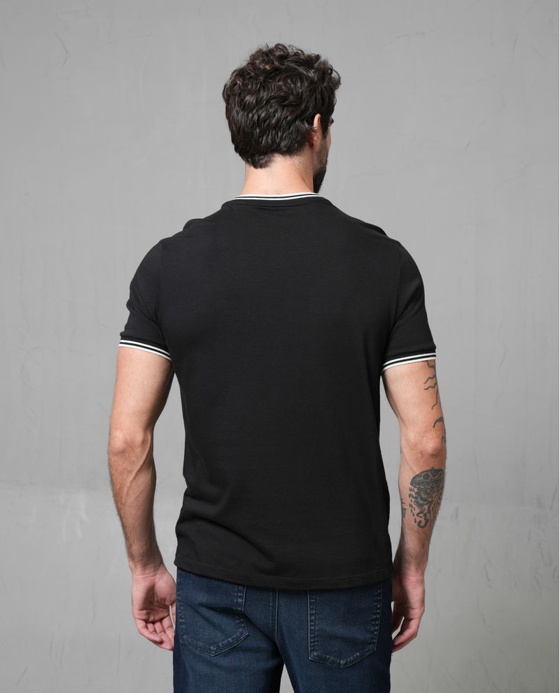 Esta camiseta comfort fit para hombre es ese esencial que va con todo. Cuenta con un diseño de cuello redondo y manga corta que garantiza un ajuste relajado. Los puños y el cuello tejidos en rib con líneas en contraste le dan un toque dinámico y moderno, mientras que el estampado en alta densidad en punto corazón suma personalidad. Ideal para combinar con pantalones y llevar un look casual con carácter. *El modelo usa una camiseta talla L. *Algunas pantallas pueden alterar el color real de la prenda.