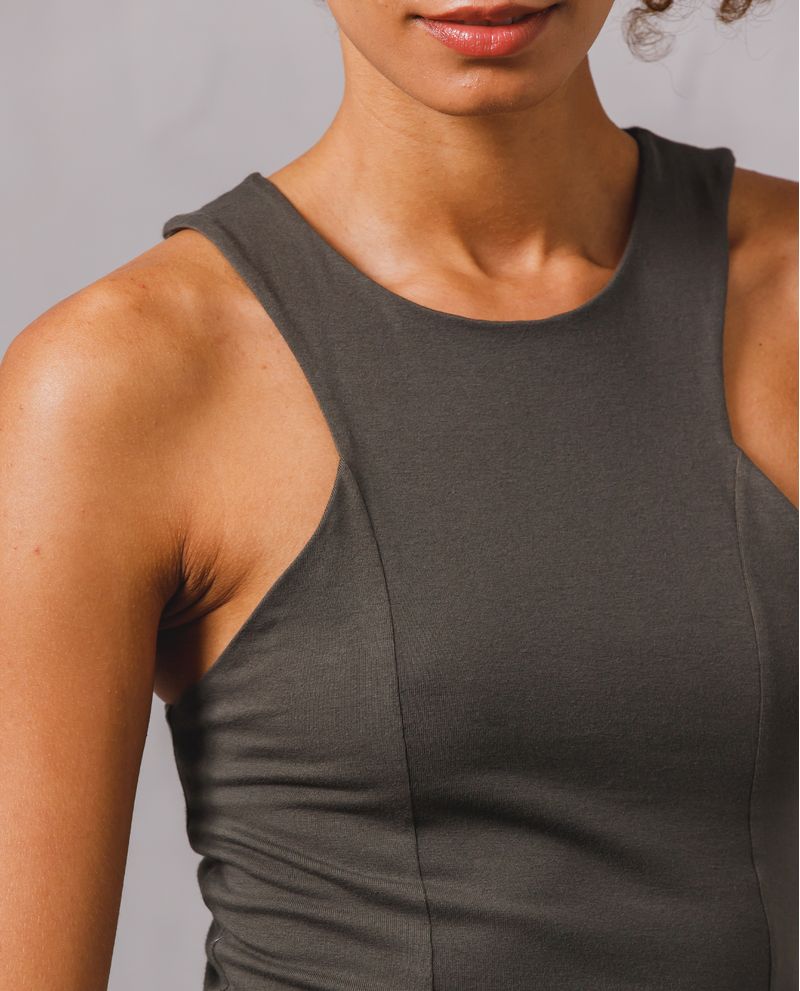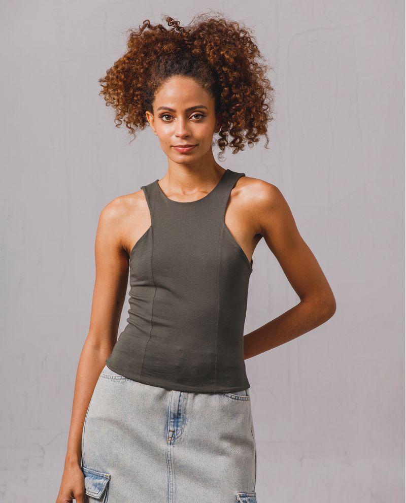 Camiseta ajustada para mujer. Diseño de cuello redondo y manga escota en hombros. Estilo con cortes en frente. Ideal para combinar con pantalones holgados. *La modelo usa una camiseta talla S. *Algunas pantallas pueden alterar el color real de la prenda.