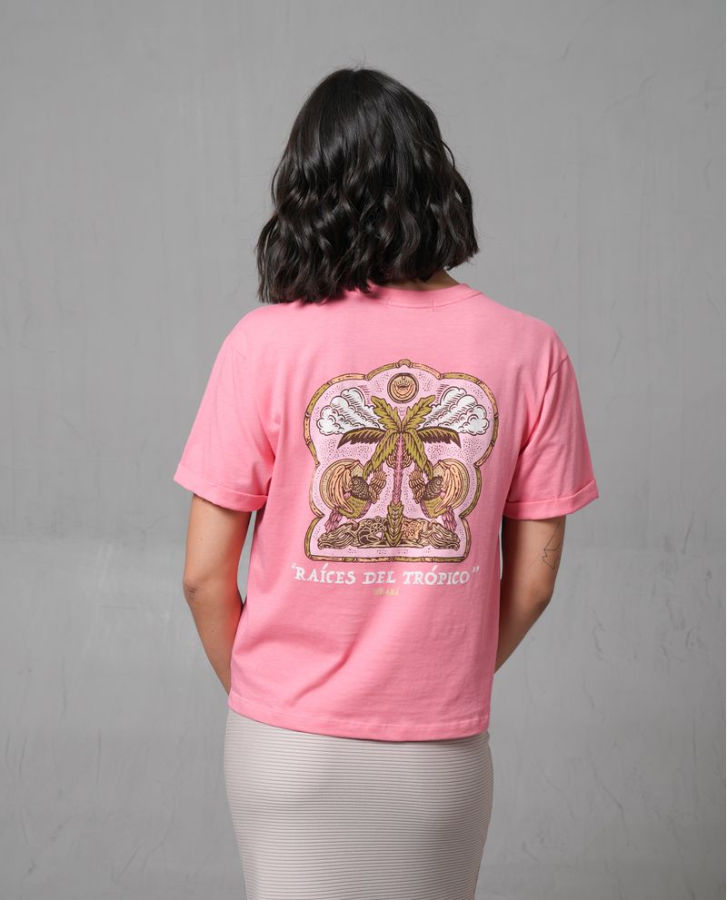 Inspirada en las raíces del trópico, esta camiseta para mujer hace parte de la cápsula Colombia Indomable y celebra la fuerza natural a través de sus estampados. Tiene un fit regular con manga corta con guardapolvo, cuello redondo en rib y detalles gráficos que marcan la diferencia: un ave en punto corazón y un estampado gran formato en la espalda. Ideal para looks relajados con un toque de carácter. *La modelo usa una camiseta talla S. *Algunas pantallas pueden alterar el color real de la prenda.