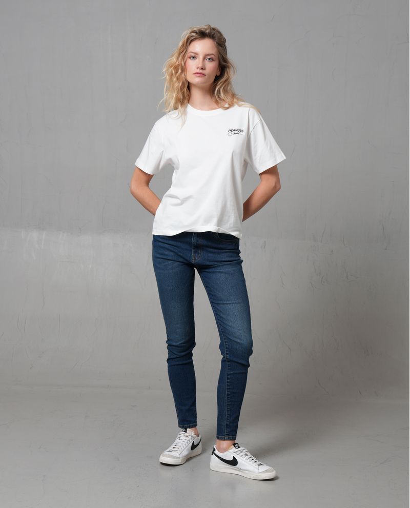 Esta camiseta básica para mujer está confeccionada en 100% algodón, ofreciendo una sensación suave y cómoda al contacto con la piel. Su diseño gráfico estampado con la frase 'Peace & Love' le da un toque moderno y relajado, ideal para quienes buscan expresar un mensaje positivo. La camiseta presenta un corte regular, clásico y recto, lo que la hace suelta y no ajustada al cuerpo, permitiendo libertad de movimiento.