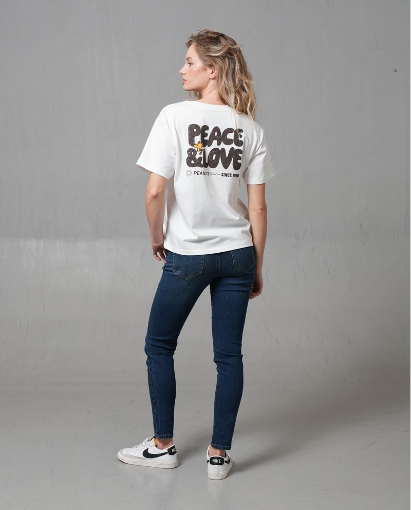 Características: Camiseta con estampado 'Peace & Love', corte regular y recto, sin cierres, confeccionada en algodón.
