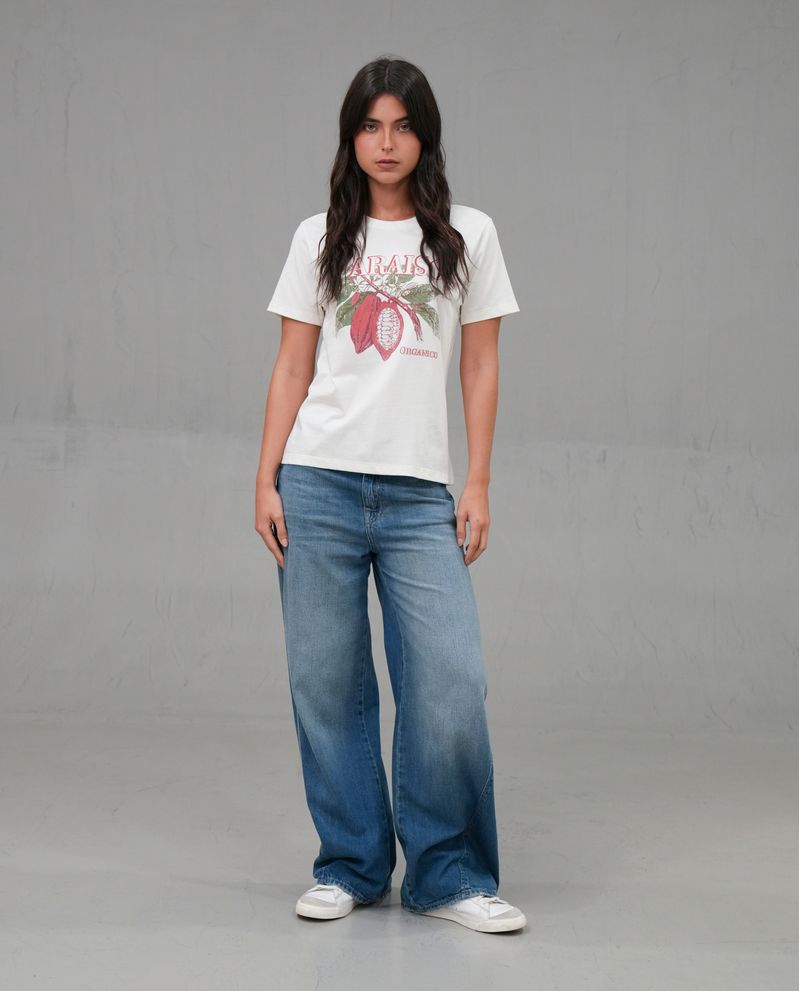 Esta camiseta es una prenda esencial para cualquier armario femenino. Confeccionada en 100% algodón, ofrece una sensación liviana y cómoda, ideal para el uso diario. Su diseño presenta un estampado localizado que añade un toque de estilo único. El ajuste regular y el cuello redondo la hacen perfecta para combinar con diferentes estilos, desde casual hasta semi-formal. Es una opción versátil para reuniones informales o salidas de fin de semana.