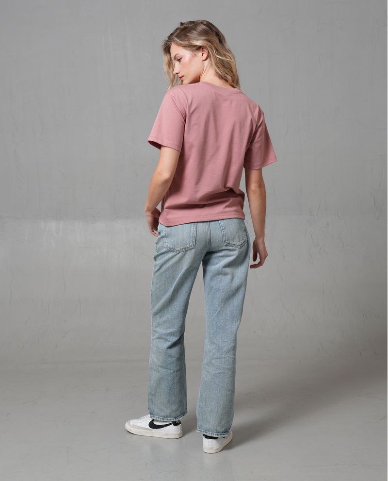 Esta camiseta de corte regular está confeccionada en 100% algodón, ofreciendo una caída recta que proporciona un ajuste cómodo sin ser entallado. Su diseño clásico de mangas cortas y cuello redondo en un color rosado envejecido la hace ideal para cualquier ocasión casual.