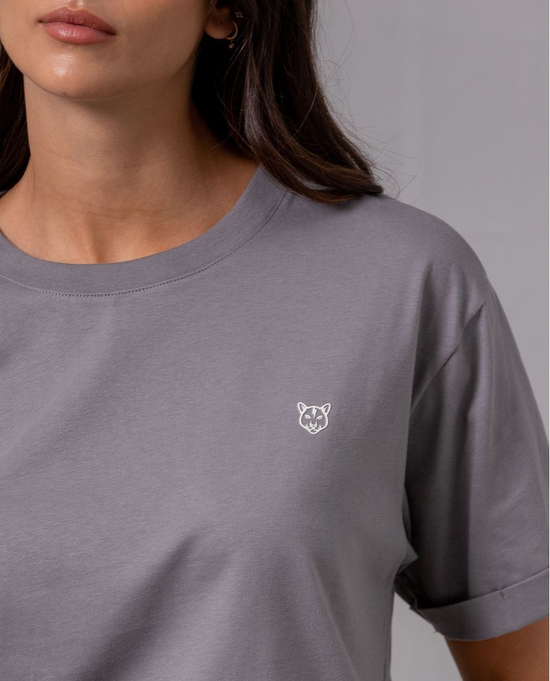 Camiseta para mujer. Diseño clásico de cuello redondo y manga corta. Silueta holgada con mini puma full color en punto corazón. Llévala con jeans y tenis. *La modelo usa una camiseta talla S. *Algunas pantallas pueden alterar el color real de la prenda.