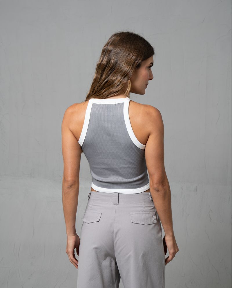 Consigue un look fresco y versátil con esta camiseta crop para mujer en tela rib, diseñada para ajustarse a tu figura y resaltar tu silueta. Los sesgos en contraste le dan un toque llamativo, mientras que su cuello halter la hace perfecta para un estilo juvenil y moderno. Disponible en dos tonos para que puedas crear múltiples combinaciones según la ocasión. *La modelo usa una camiseta talla S. *Algunas pantallas pueden alterar el color real de la prenda.