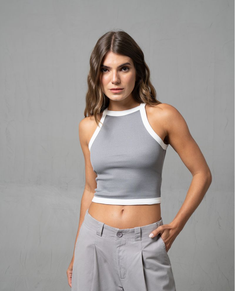 Camiseta crop tipo halter con sesgos al contraste para mujer | Tienda Online