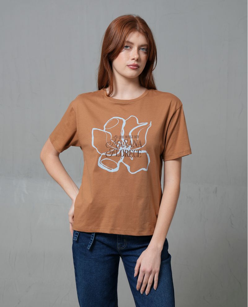 Camiseta cuello redondo con estampado en frente para mujer