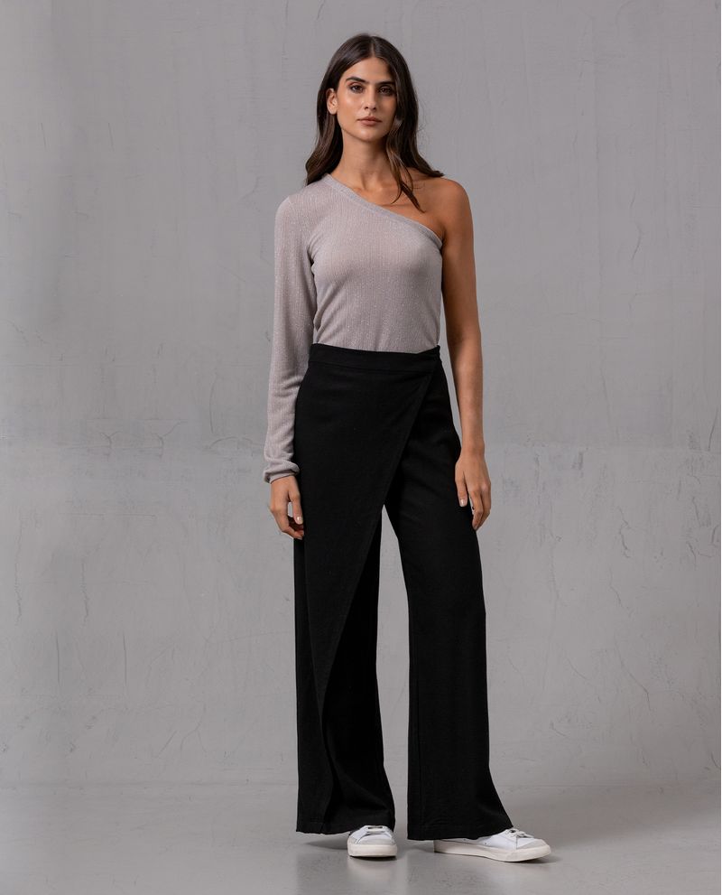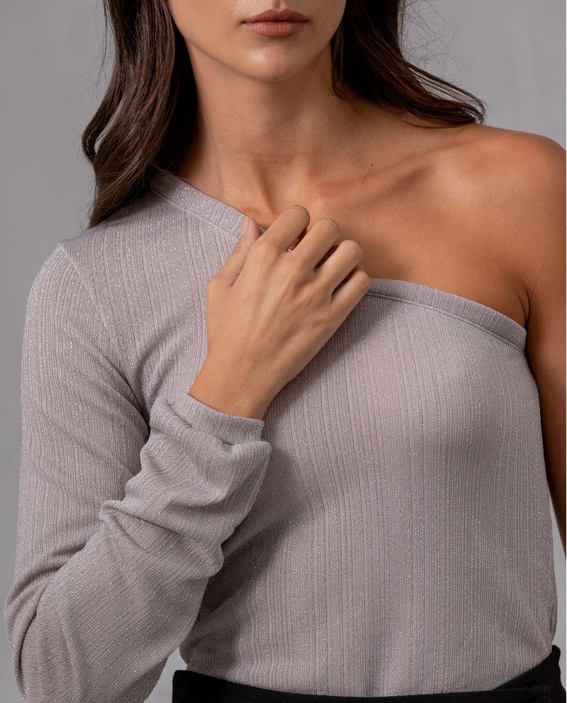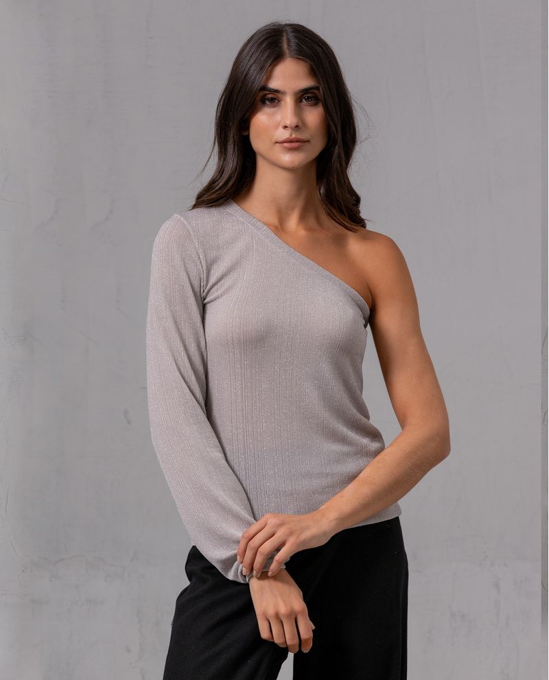 Camiseta para mujer. Diseño de una sola manga larga. Cuenta con puño ajustado que genera un caída fluida y detalles en hilos de lurex para un efecto brillo. Silueta semiajustada. Combínala con un pantalón tipo Wide Leg. *La modelo usa una camiseta talla S. *Algunas pantallas pueden alterar el color real de la prenda.