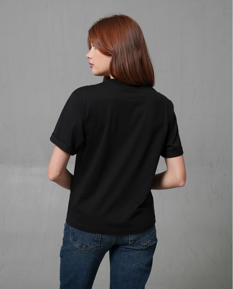 Características: Camiseta con aplicaciones brillantes en los hombros y bordado en el frente. Ajuste regular, cuello redondo y manga estándar.