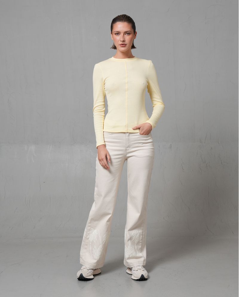Camiseta manga larga con corte decorativo en frente para mujer | Compra Online