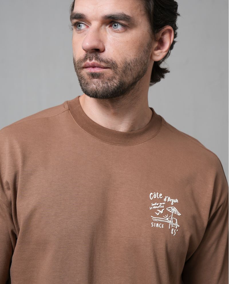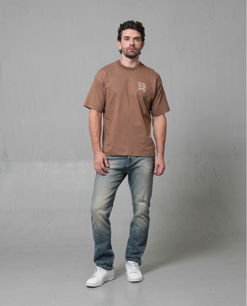 Esta camiseta está confeccionada en 100% algodón, ofreciendo una sensación de suavidad y comodidad al contacto con la piel. Su diseño regular y caída natural se adapta a diversos tipos de cuerpos, proporcionando una movilidad óptima. Ideal para ocasiones casuales, su pequeño estampado gráfico de color claro en el pecho añade un toque moderno y sutil.