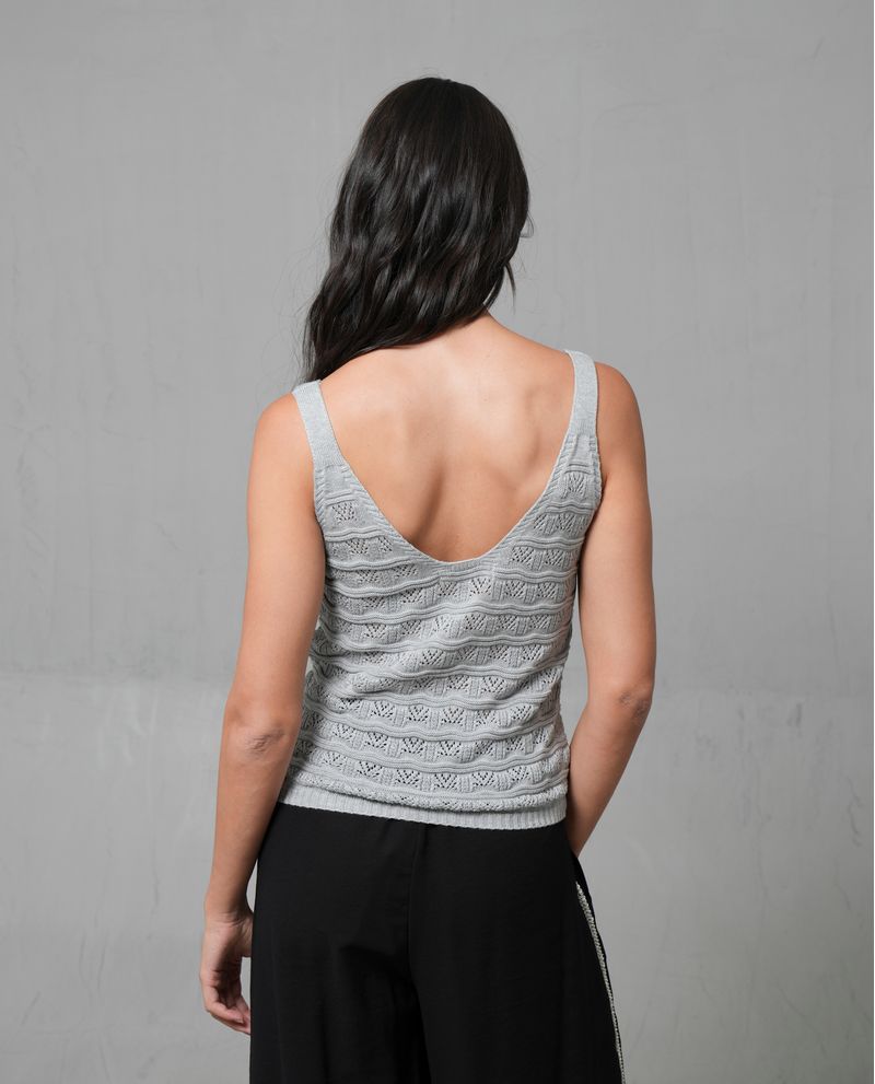 Camiseta tejida con cuello en V para mujer | Tienda Online