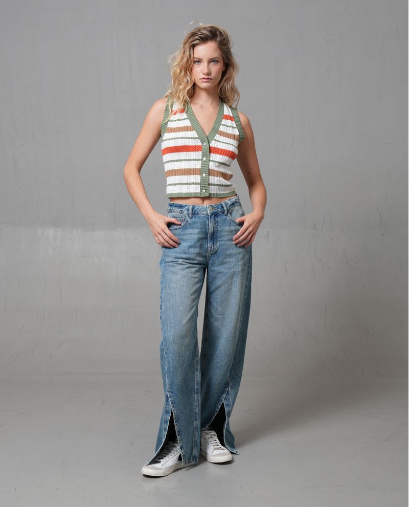 Este chaleco es la elección perfecta para quienes buscan estilo y comodidad en su día a día. Confeccionada 100% en acrílico, ofrece un ajuste cómodo y un peso cualitativo pesado que proporciona calidez en climas fríos. Su diseño de rayas preteñidas añade un toque moderno y sofisticado, ideal para cualquier ocasión semanal. La chaqueta es versátil y puede combinarse fácilmente con jeans o faldas para un look casual, o con pantalones de vestir para un estilo más formal.