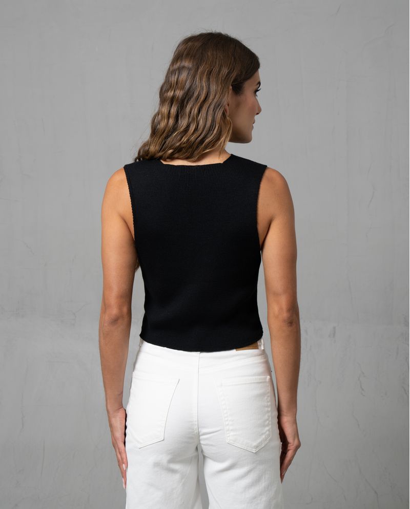 Chaleco tejido con amarres al frente para mujer
