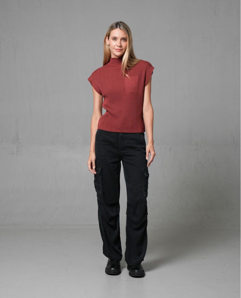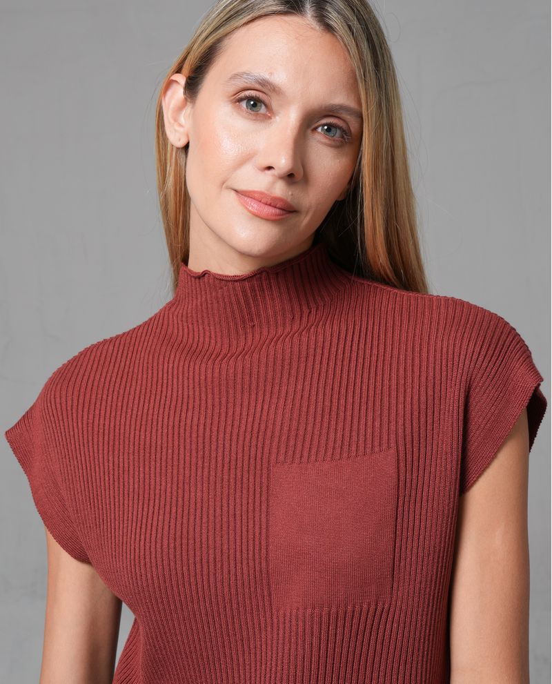 Este chaleco tejido para mujer, de diseño acanalado y silueta en tendencia, es perfecto para looks en capas. Con cuello alto, manga sisa rodada y recuadro en tejido en contraste que aportan originalidad. Ideal para combinar como prenda principal con jeans o sobre camisetas de manga larga. *La modelo usa un chaleco talla S. *Algunas pantallas pueden alterar el color real de la prenda.