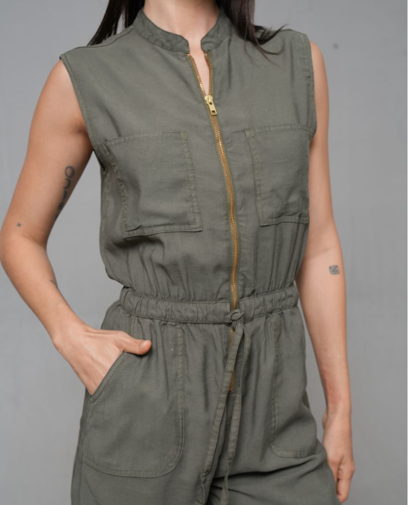 Enterizo corto con cuello tipo nerú y bolsillos tipo parche para mujer | Compra Online