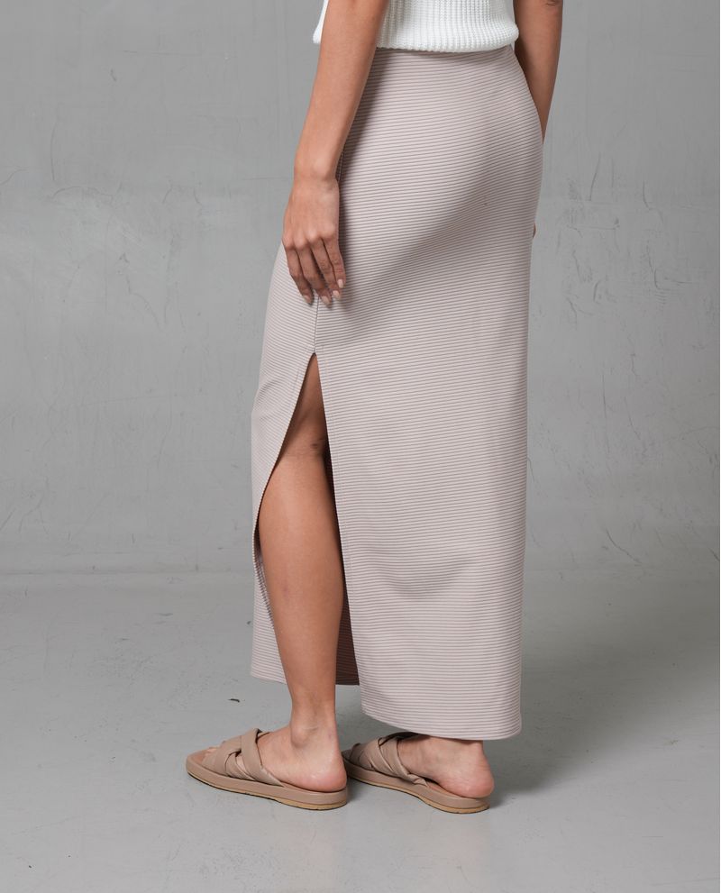 Esta falda larga tipo columna para mujer, confeccionada en tejido de punto, es ideal para crear looks sofisticados con un resultado cómodo y actual. De silueta ajustada al cuerpo, tiene una abertura lateral y pretina elástica que se adapta con suavidad. Perfecta para combinar con tops tejidos. *La modelo usa una falda talla 6. *Algunas pantallas pueden alterar el color real de la prenda.