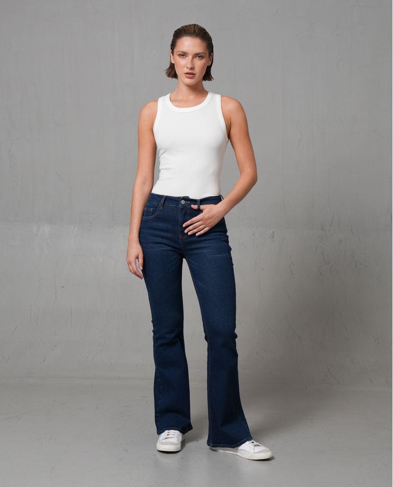 Este jean Flare de tiro alto para mujer es la combinación perfecta entre elegancia y movimiento. Ajustado en cintura, cadera y pierna, se abre en una bota acampanada que alarga visualmente la silueta. es el básico ideal para un look moderno con un toque retro. *La modelo usa un jean talla 6. *Algunas pantallas pueden alterar el color real de la prenda.