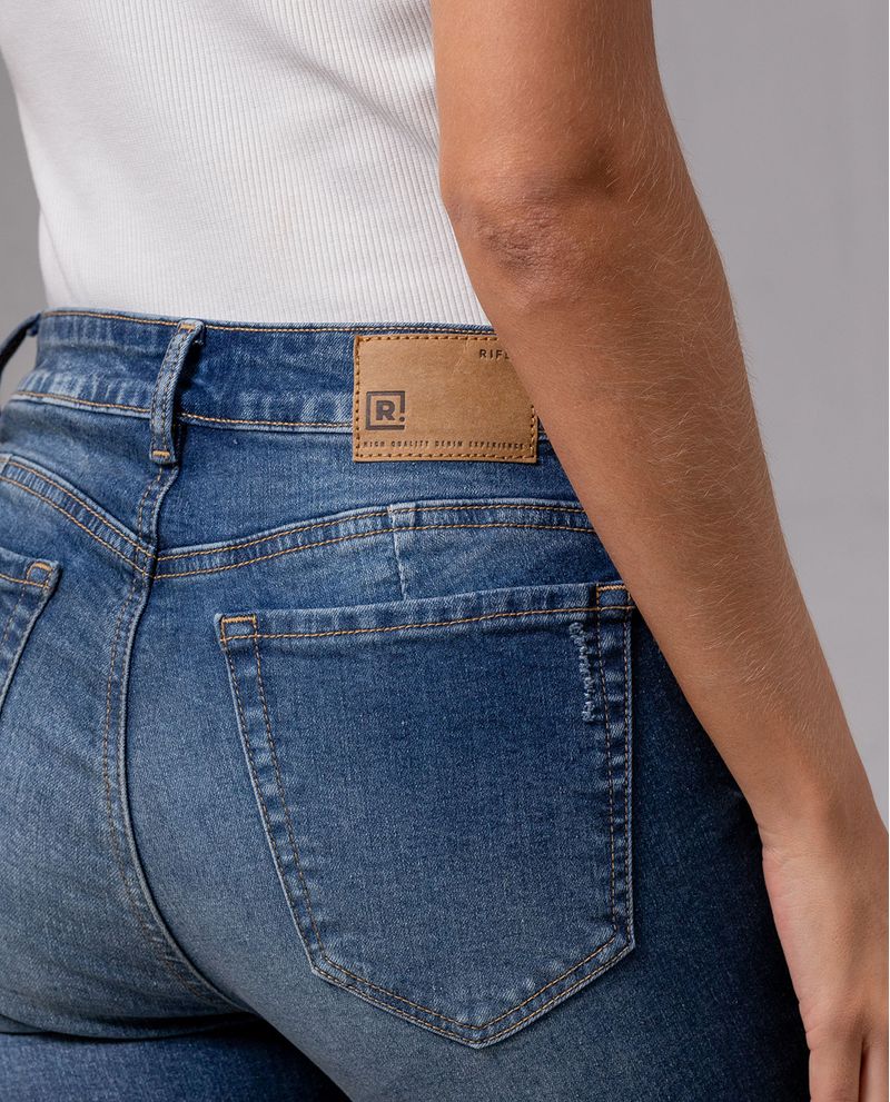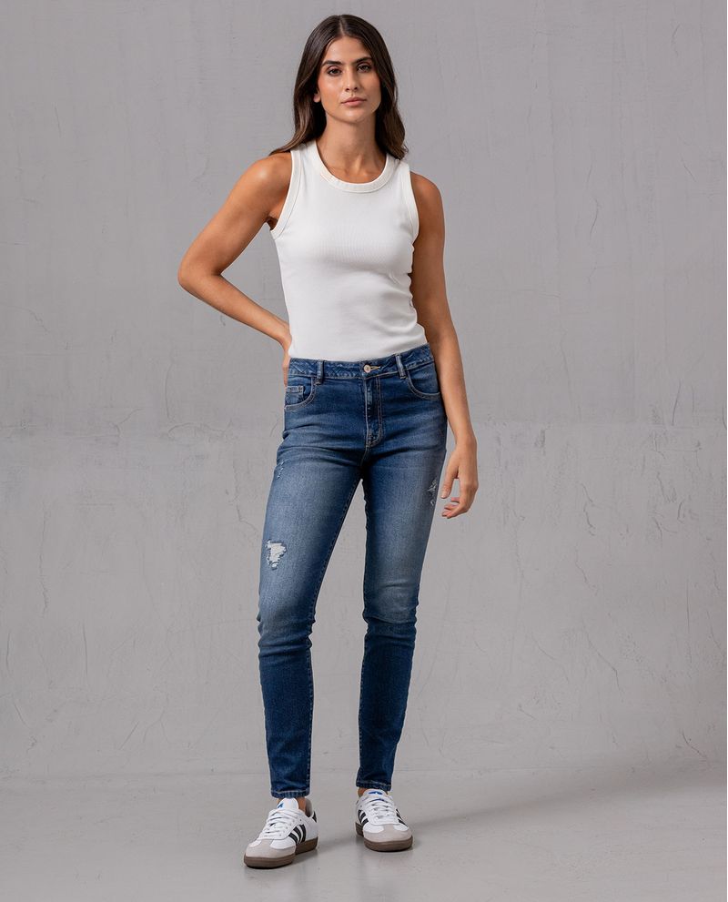 Jean para mujer. Magic Up fit, ajustado desde la cadera hasta el tobillo. De tiro medio, elaborado en denim tono azul medio con bigotes y realces de costura en pretina y bolsillos. Lleva rotos localizados y ajuste con cierre y botón. Combínalo con una camiseta blanca. *La modelo usa un jean talla 6. *Algunas pantallas pueden alterar el color real de la prenda.