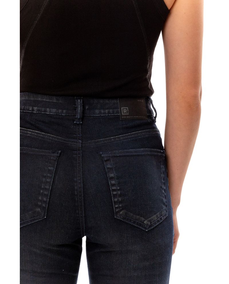 Jean para mujer. Skinny fit, ajustado en cadera, pierna y bota. En denim tono oscuro con iluminaciones en muslos y arrugas 3D. De diseño clásico con cinco bolsillos, pasadores en pretina y ajuste de cierre y botón. Perfecto para usar con camisetas básicas manga sisa. *La modelo usa un jean talla 6. *Algunas pantallas pueden alterar el color real de la prenda.