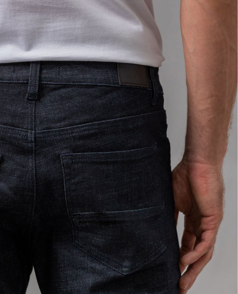 Jean para hombre. Slim fit, ajustado en cadera, rodilla y bota. Diseñado en tono oscuro con arrugas 3D. Estilo clásico de cinco bolsillos con ajuste de cierre y botón. Combínalo con variedad de camisas o camisetas. *El modelo usa un jean talla 32. *Algunas pantallas pueden alterar el color real de la prenda.