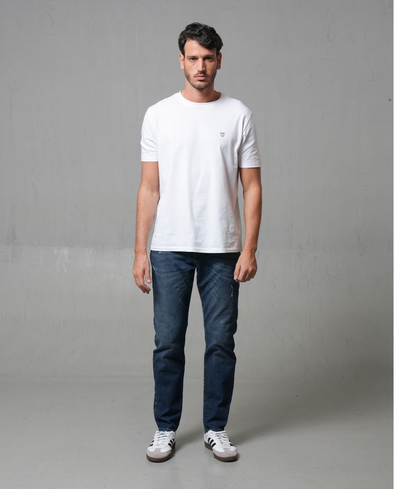 Este jean Slim para hombre es la mezcla perfecta entre comodidad y estilo. Confeccionado en denim tono oscuro con iluminaciones en muslos y desgastes localizados para conseguir un look moderno que se adapta a cualquier ocasión. Su silueta ajustada pero flexible lo hace ideal para combinar con camisetas, camisas o chaquetas, logrando un outfit versátil que funciona desde el día hasta la noche. Un básico imprescindible con un aire contemporáneo. *El modelo usa un jean talla 32. *Algunas pantallas pueden alterar el color real de la prenda.
