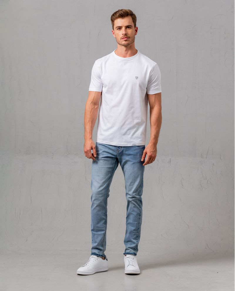 Jean para hombre. Slim fit, ajustado en cadera, rodilla y bota. Estilo clásico cinco bolsillos con ajuste de cierre y botón. Diseñado en tono claro con mini desgastes en muslos. Destroyed en vistas y bota. Combínalo con camisetas en tonos oscuros. *El modelo usa un jean talla 32. *Algunas pantallas pueden alterar el color real de la prenda.