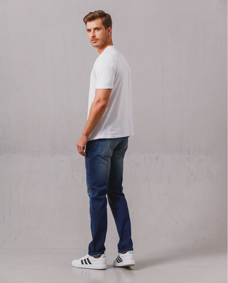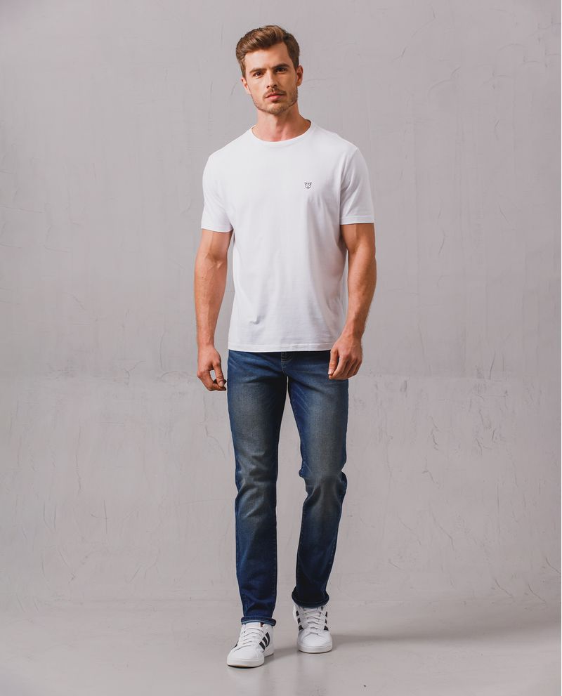 Jean para hombre. Straight fit, ajustado en cadera, semiajustado en pierna y bota recta. Diseñado en denim tono oscuro con iluminaciones en muslos. Cuenta con cinco bolsillos, ajuste de cierre y botón y pasadores en pretina. Úsalo con camisetas básicas y tenis. *El modelo usa un jean talla 32. *Algunas pantallas pueden alterar el color real de la prenda.