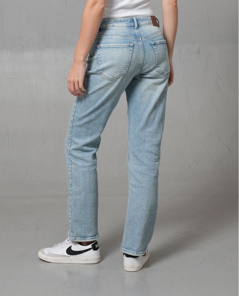 Este jean straight para mujer es una prenda esencial en cualquier armario. Confeccionado con un 69% de algodón y 31% de poliéster, ofrece una combinación perfecta de comodidad y durabilidad. Su diseño recto desde la cadera hasta el tobillo proporciona una silueta clásica y atemporal. El tiro medio asegura un ajuste cómodo en la cintura, mientras que los clásicos cinco bolsillos añaden funcionalidad. El cierre de botón y cremallera garantiza un ajuste seguro.