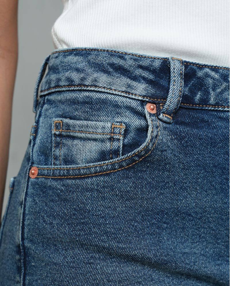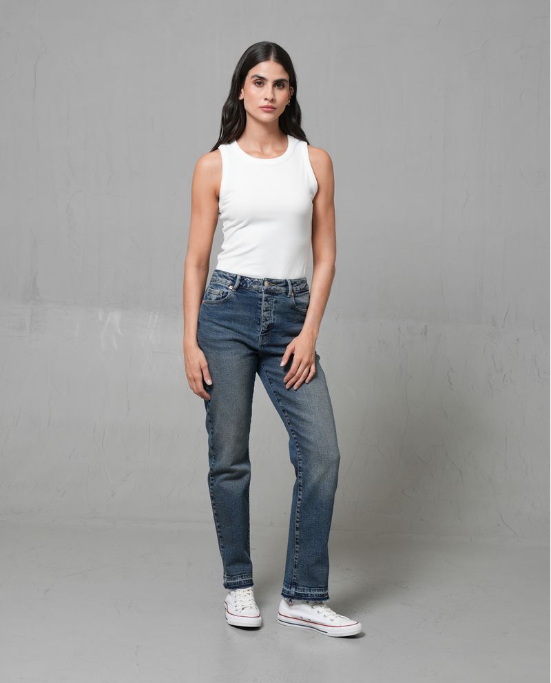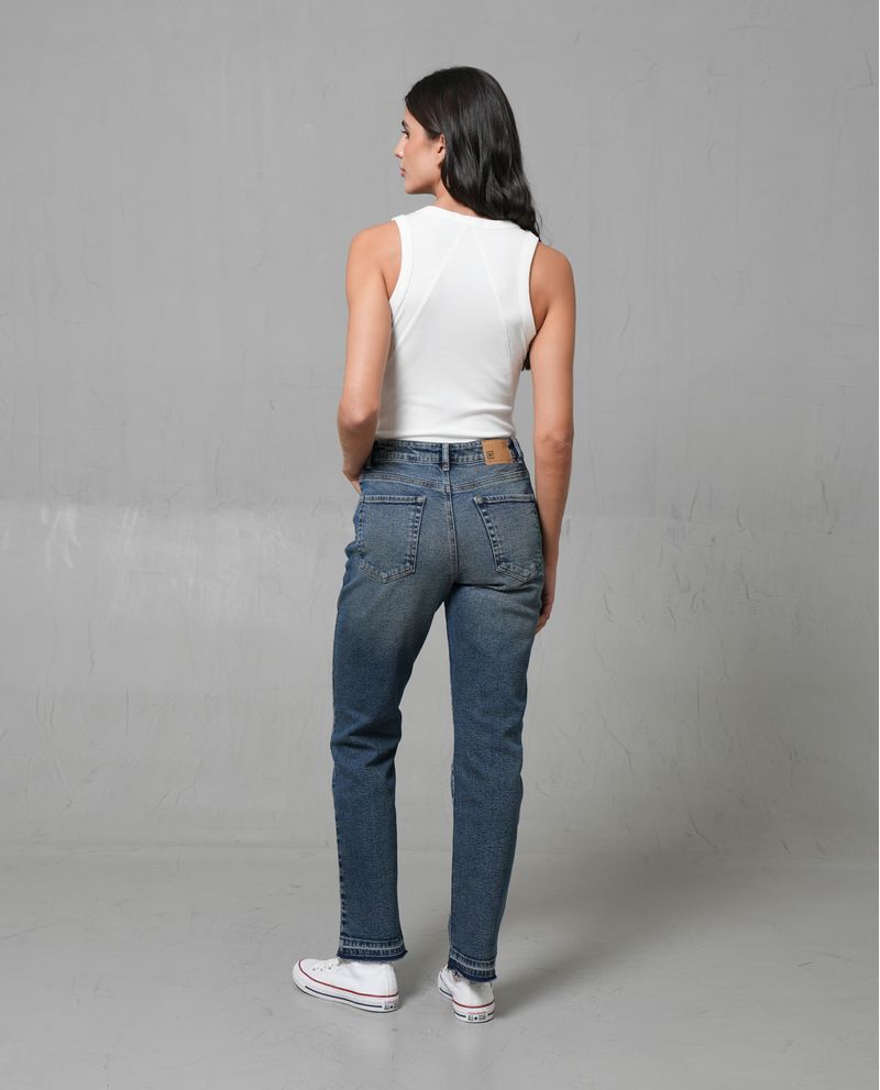 Este jean para mujer Straight fit cuenta con el equilibrio perfecto entre estructura y naturalidad. Su diseño de tiro alto, con silueta semiajustada en cadera y caída recta desde la rodilla hasta la bota le hará honor a tu figura; mientras que su tono medio e iluminaciones sutiles, le dan un acabado moderno, convirtiendo sus detalles clásicos de cinco bolsillos y cierre con botones, el complemento perfecto para una prenda pensada en el día a día. *La modelo usa un jean talla 6. *Algunas pantallas pueden alterar el color real de la prenda.