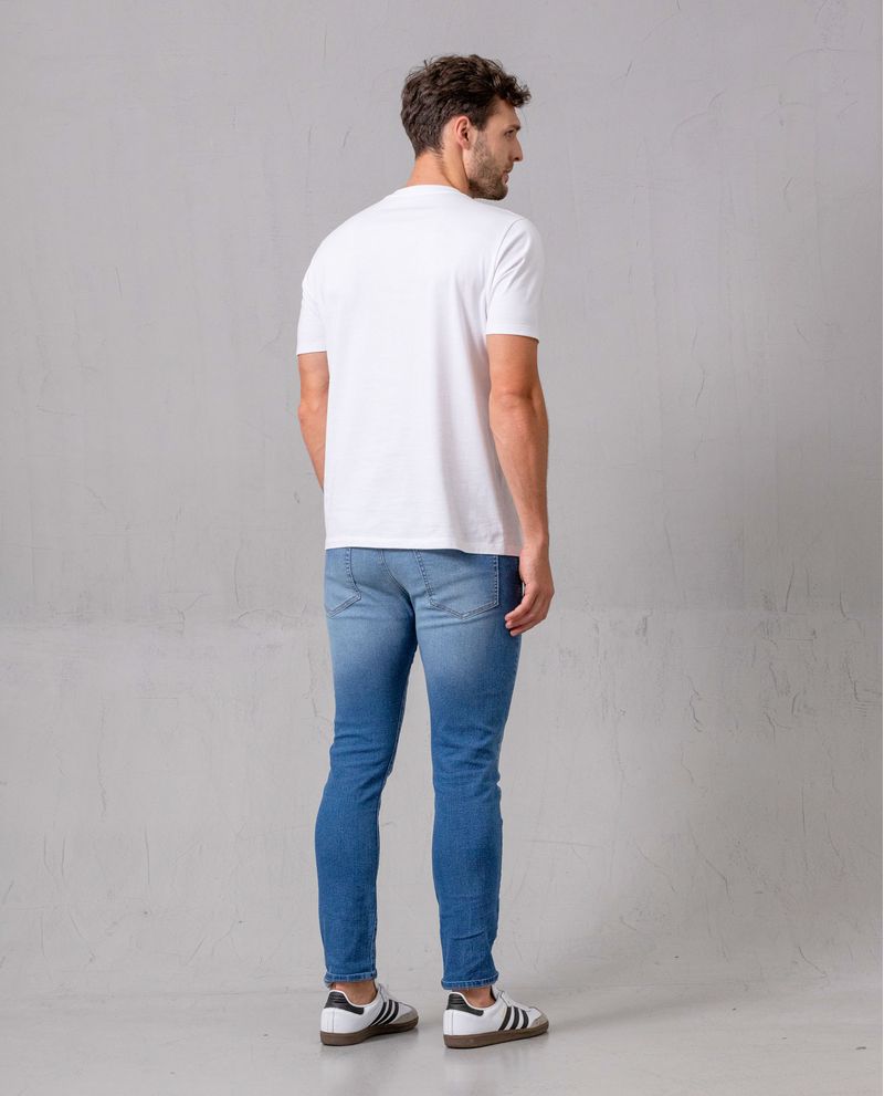 Un corte superajustado que resalta la silueta con estilo. Este jean Super Slim fit para hombre de tiro medio tiene todo lo que necesitas: un tono medio versátil para cualquier ocasión, y un ajuste con cierre y botón para un toque práctico y cómodo. Los bigotes sutiles y las iluminaciones en el muslo aportan detalles únicos que elevan su diseño, dándole un aire moderno y elegante. Perfecto para llevar con camisetas básicas. *El modelo usa un jean talla 32. *Algunas pantallas pueden alterar el color real de la prenda.