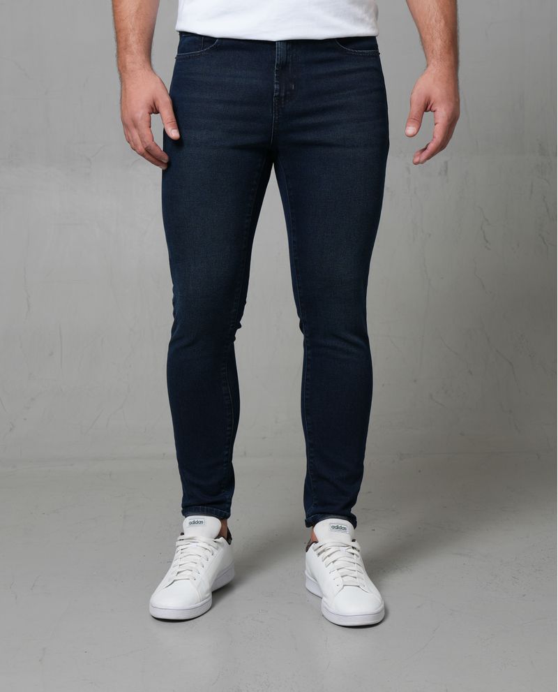 Este jean Super Slim para hombre destaca por su silueta ceñida, brindando un look moderno. Confeccionado en denim azul oscuro, incluye detalles como bigotes e iluminaciones en muslos, vistas y pretina que realzan su diseño. El cierre con botón metálico y las costuras marcadas terminan de elevarlo. Combínalo con camiseta y tenis y destaca sin complicaciones. *El modelo usa un jean talla 32. *Algunas pantallas pueden alterar el color real de la prenda.