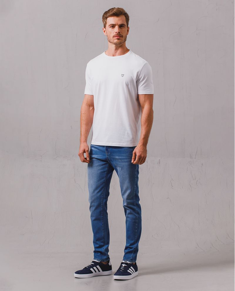 Jean para hombre. Súper Slim fit, súper ajustado en cadera, pierna y bota. En denim tono medio con cinco bolsillos. Cuenta con bigotes suaves en frente, desgaste en boca de bolsillos, pasadores en pretina y ajuste de cierre y botón. Llévalo con camisetas y tenis. *El modelo usa un jean talla 32. *Algunas pantallas pueden alterar el color real de la prenda.