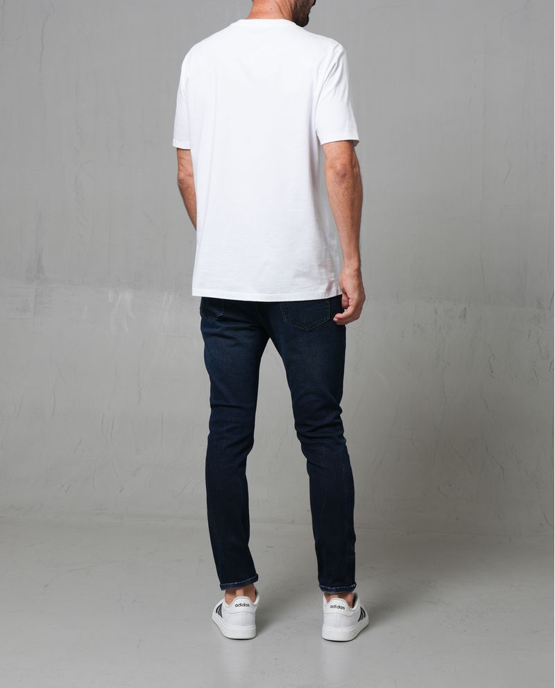 Este jean Super Slim redefine las tendencias con una silueta ceñida y confort absoluto. Su tono azul oscuro se realza con bigotes localizados, iluminaciones sutiles y raspones en los bolsillos para un estilo moderno. Un diseño esencial para quienes buscan versatilidad, ideal para combinar con camisetas y tenis en ocasiones casuales. *El modelo usa un jean talla 32. *Algunas pantallas pueden alterar el color real de la prenda.