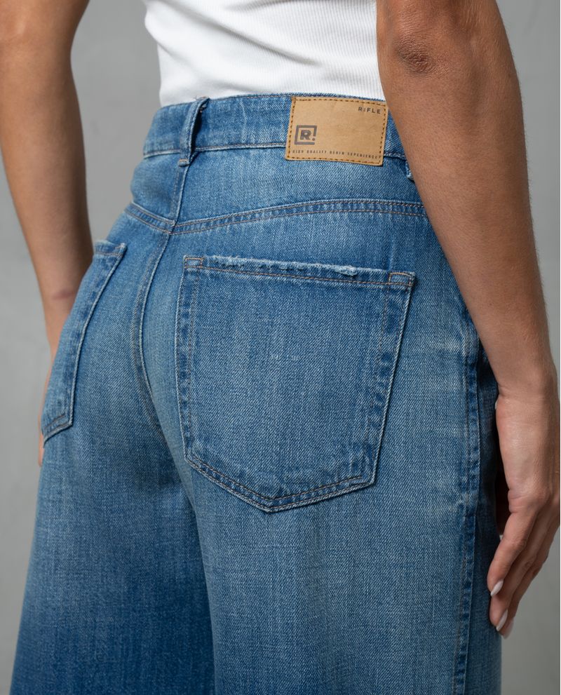 ¡Un jean para mujer con la comodidad de un pantalón! Este Wide Leg de tiro alto, es la mezcla perfecta entre tendencia y libertad.Con sus aberturas en los costados, iluminaciones y bigotes, le aporta un toque único y moderno. Los desgastes en la boca de los bolsillos le dan ese aire vintage, mientras que el denim liviano asegura una sensación ultra cómoda. *La modelo usa un jean talla 6. *Algunas pantallas pueden alterar el color real de la prenda.