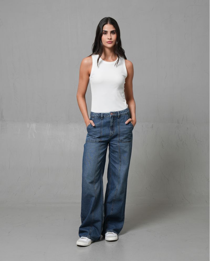 Con una silueta que marca tendencia, este jean para mujer Wide Leg fit está diseñado para combinar comodidad y carácter. Su tiro alto y ajuste semiajustado en cadera te permitirán lucir una silueta muy favorecedora, mientras el tono medio y los bolsillos tipo carpintero le suman un aire casual. Sus cortes decorativos, bigotes e iluminaciones completan una prenda con la que te robarás todas las miradas. *La modelo usa un jean talla 6. *Algunas pantallas pueden alterar el color real de la prenda.